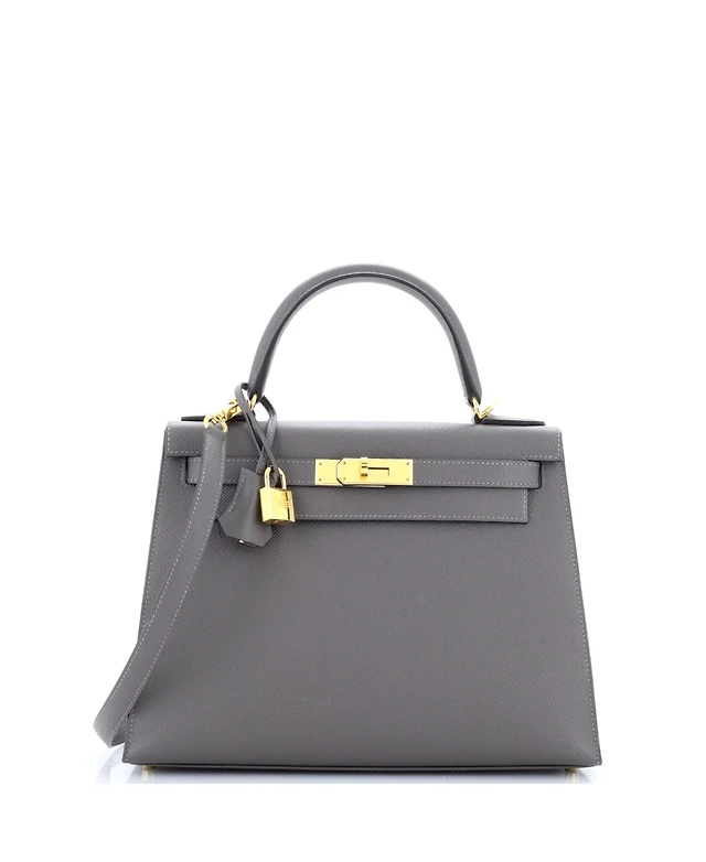 Pre-Owned HERMES Kelly 28 Handbag Grey Epsom with Gold Hardware