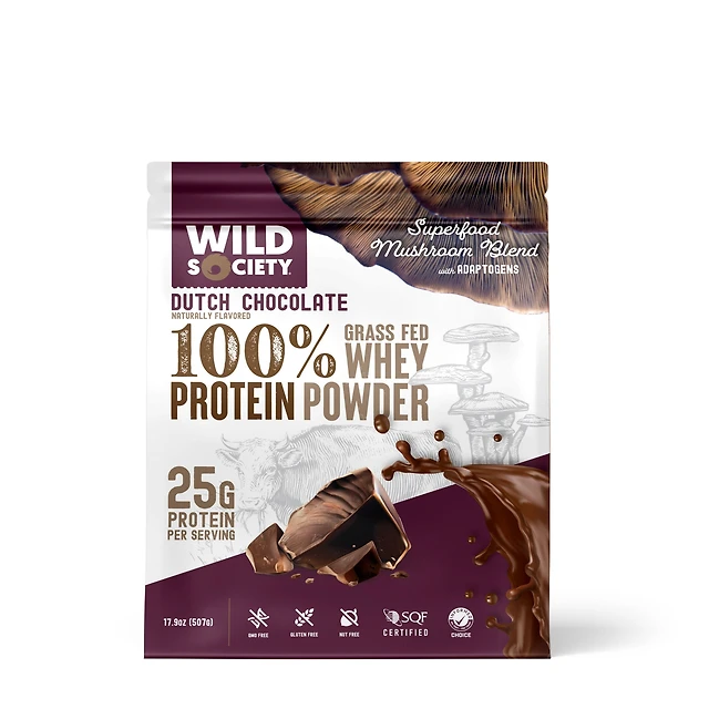 Wild Society Nutrition 100% Grass Fed Whey Protein Powder Healthy - Dutch Chocolate (15 Servings)