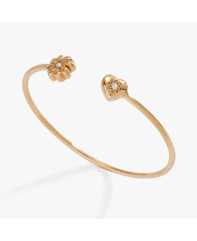 Love Luck Heart And Clover Flex Cuff Bracelet