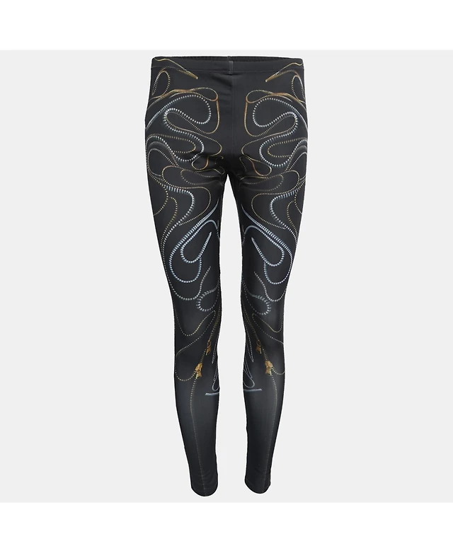 Pre-Owned Alexander Mcqueen Women's Black Zipper Print Jersey Leggings