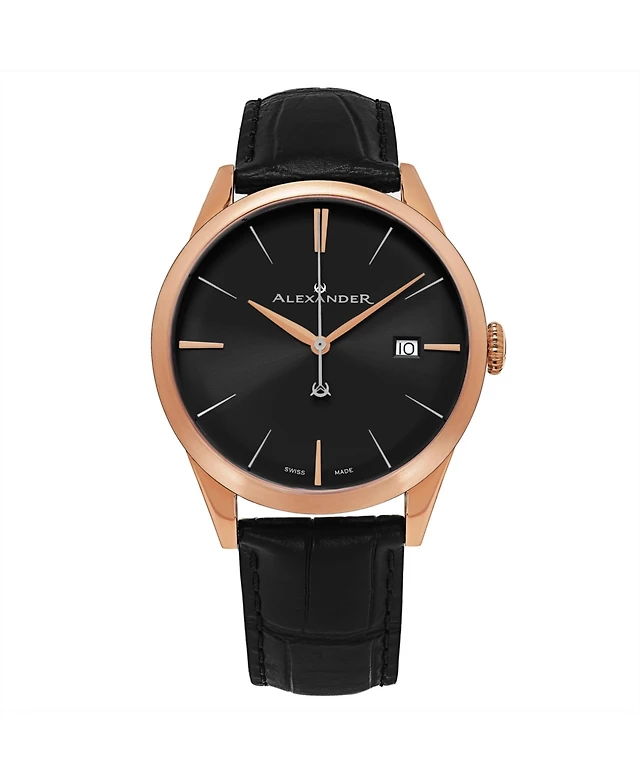 Alexander Men's Sophisticate Black Leather , Black Dial , 40mm Round Watch