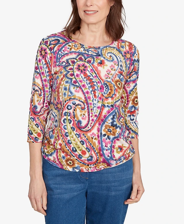 Alfred Dunner Classic Stained-Glass SharkBite Top