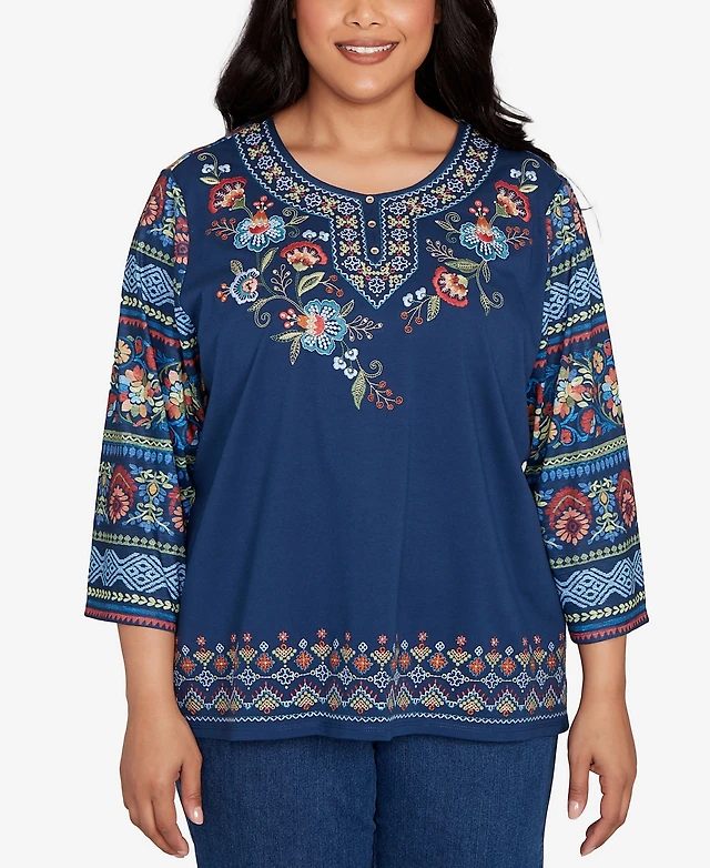 Alfred Dunner Plus Stockbridge Classic Fit Soft Embroidered Pattern Top