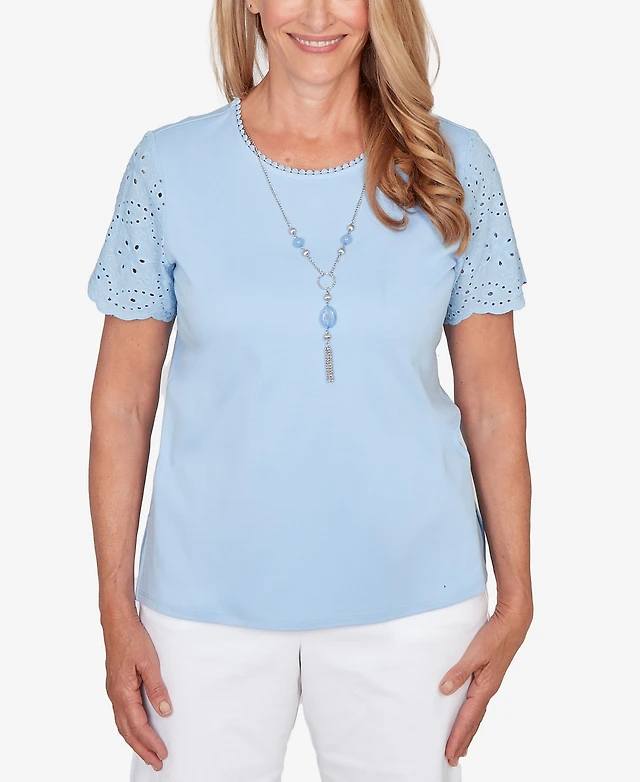 Alfred Dunner Petite Natural Wonder Crochet Pocket Short Sleeve T-shirt