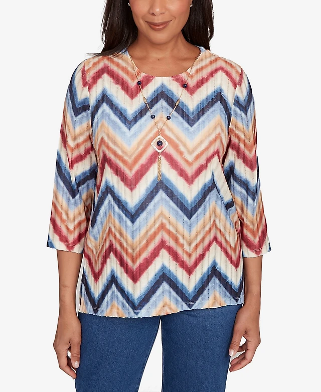 Alfred Dunner Plus Size Classic Lacey Ombre Chevron Crew Neck Top
