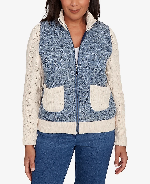 Alfred Dunner Women's Sunset Canyon Sweater Ribbed Quilted Jacket