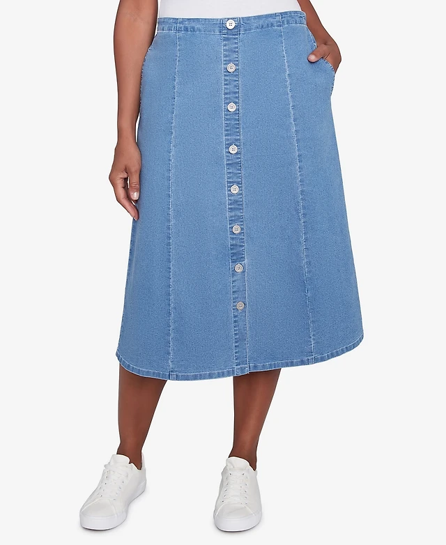 Alfred Dunner Petite Paneled Full Length Denim Skirts