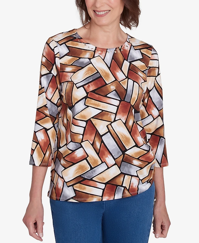 Alfred Dunner Women's Geometric Top with Detailed Neckline
