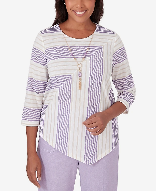 Alfred Dunner Women's Classic Vertical Geometric Top with Necklace
