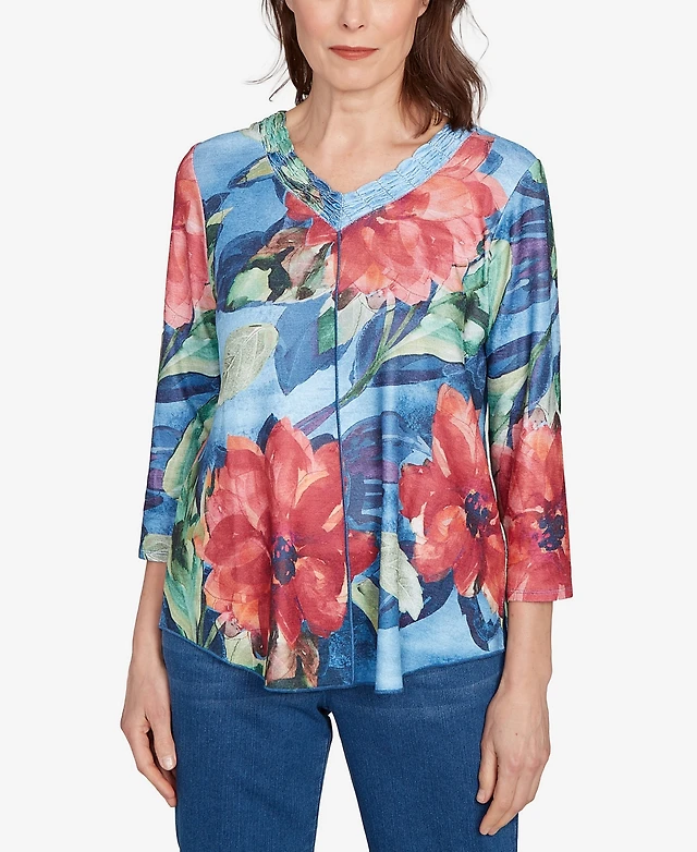 Alfred Dunner Petite Lake Champlain Floral Printed Beaded Neck Top