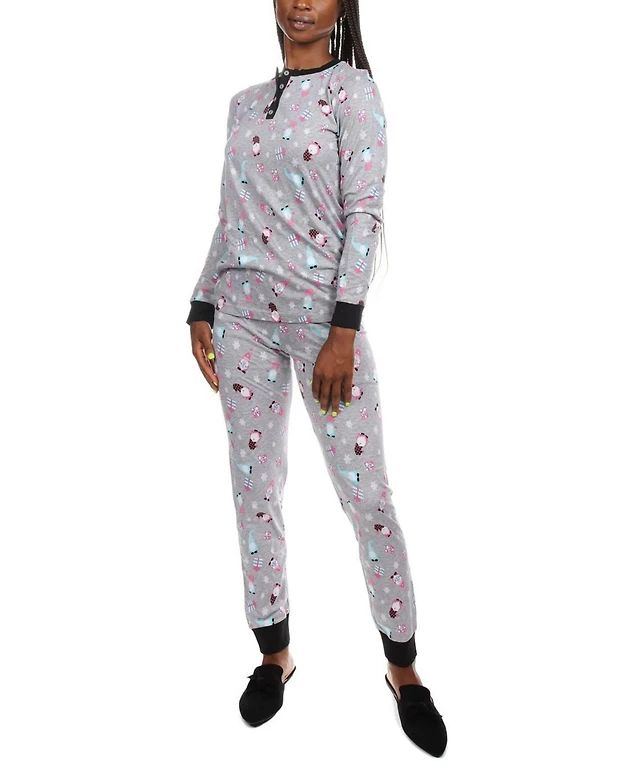MeMoi Women's Holiday Gnomes Cotton Blend 2 Piece Pajama Set