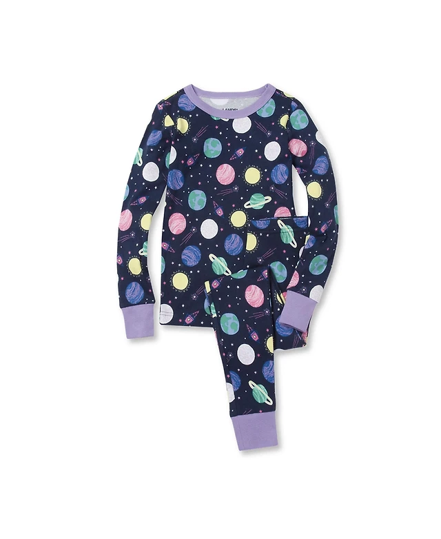 Toddler Girl Space Star Print 100% Cotton Long-Sleeve Snug Fit 4-Piece Pajamas - White/Purple