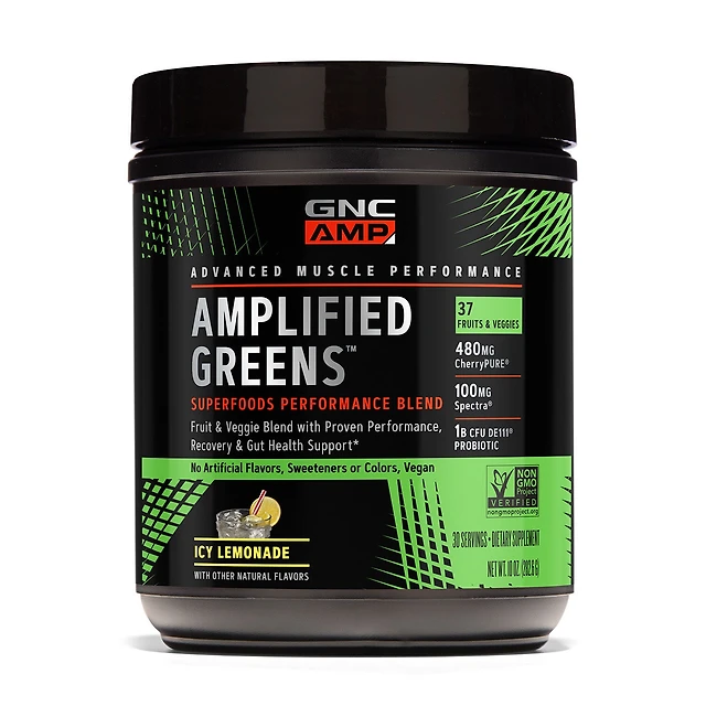 GNC AMP Amplified Greens Superfoods Performance Blend Healthy - Icy Lemonade 10 Oz. (30 Servings)