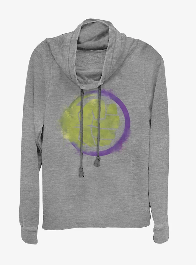 Marvel Avengers: Endgame Hulk Spray Logo Cowlneck Long-Sleeve Girls Grey Heathered Top