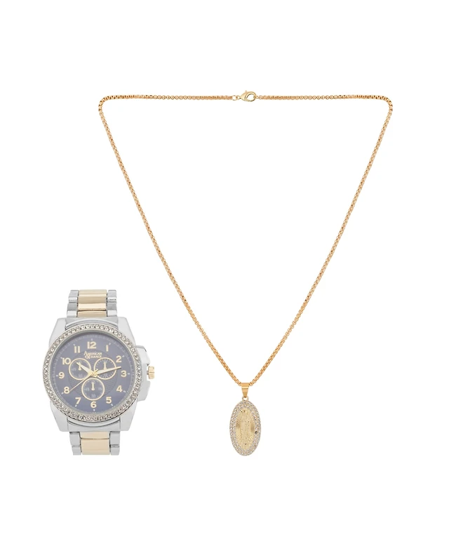 Men's Bulova Crystal Watch with Black Dial and Cross Pendant Box Set (Model: 96K110) - 24"