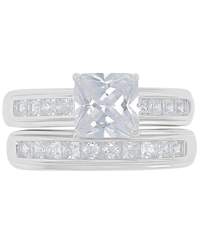 Cubic Zirconia Princess Cut Channel Bridal Set Sterling Silver