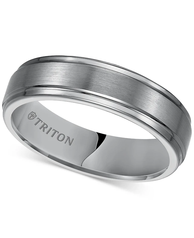 Triton Men's Tungsten and Sterling Silver Ring, Channel-Set Black Diamond Accent Wedding Band