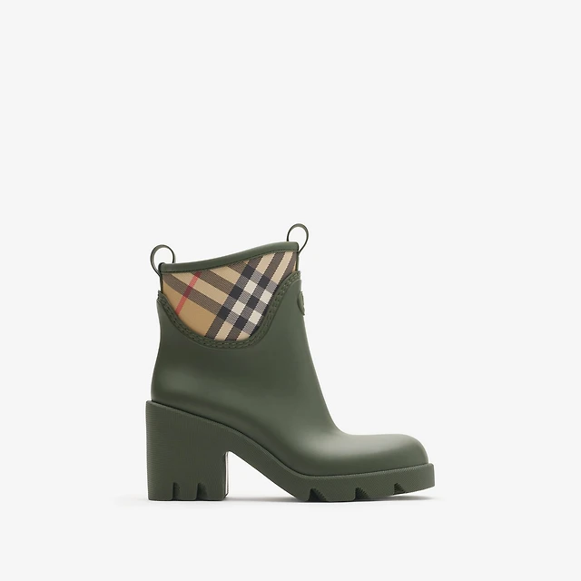Check and Leather Heel Boots in Black/archive beige - Women | Burberry® Official