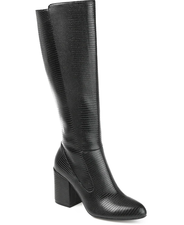 Journee Collection Women's Sanora Wide Calf Stacked Heel Mid Shaft Boots