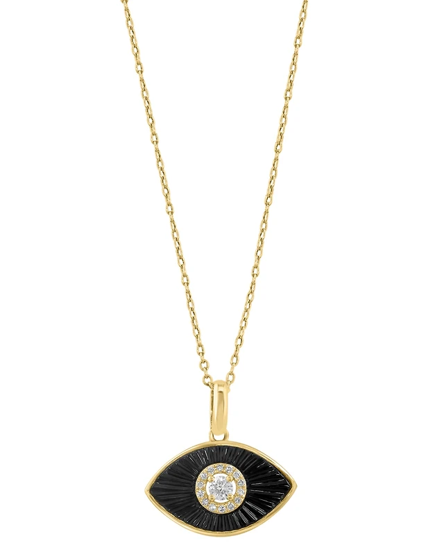 Effy Diamond (1/10 ct. t.w.) & Enamel Evil Eye 18" Pendant Necklace in Sterling Silver