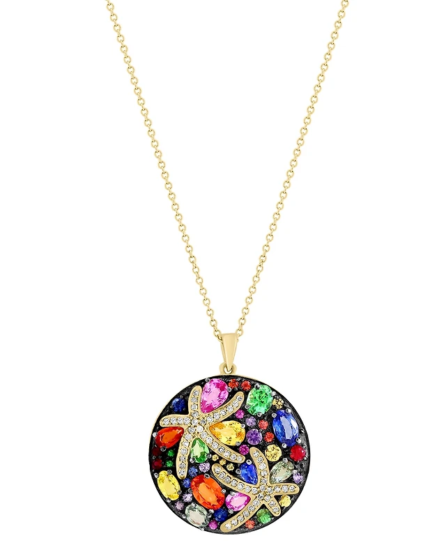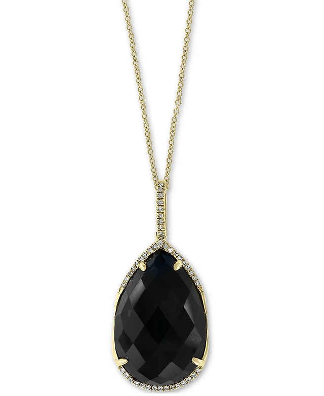 Effy Onyx (22 x 15mm) & Diamond (1/8 ct. t.w.) 18" Pendant Necklace in 14k Gold