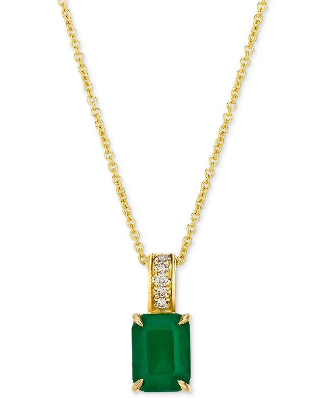 Emerald (7/8 ct. t.w.) & Diamond (1/20 ct. t.w.) 18" Pendant Necklace in 10k Gold