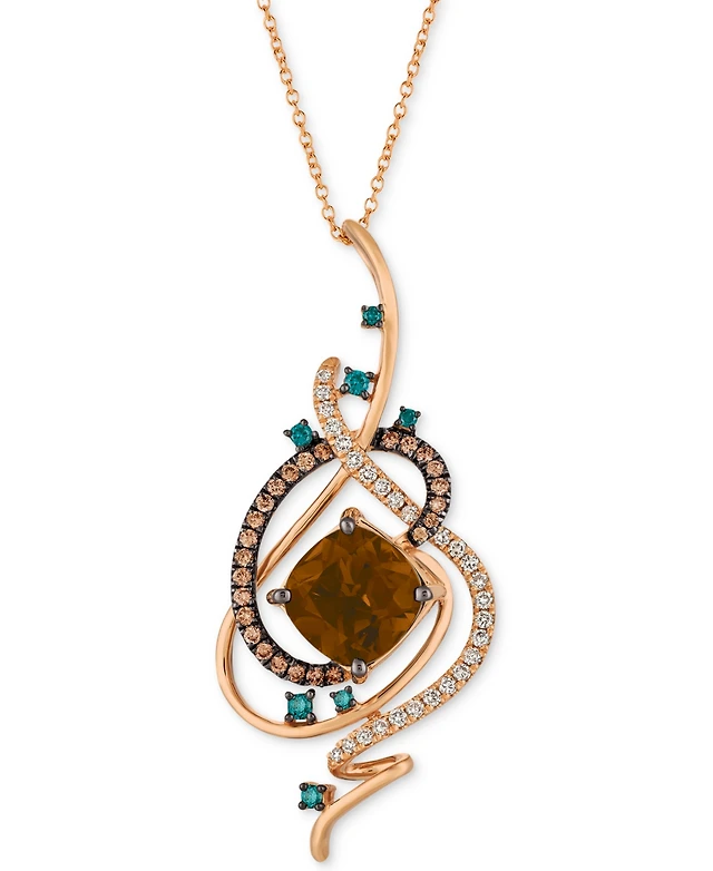 Le Vian Chocolate Quartz (3-1/2 ct. t.w.) & Diamond (3/4 ct. t.w.) Double Halo Pendant Necklace in 14k Rose Gold, 18" + 2" extender