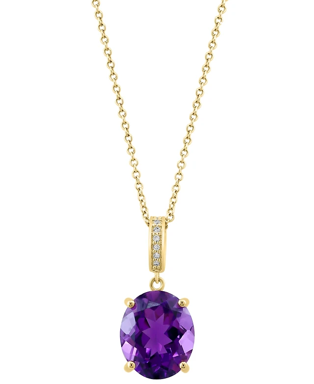 Macy's Amethyst (3-1/8 ct. t.w.) and Diamond (1/4 ct. t.w.) Pendant Necklace in 14k Yellow Gold