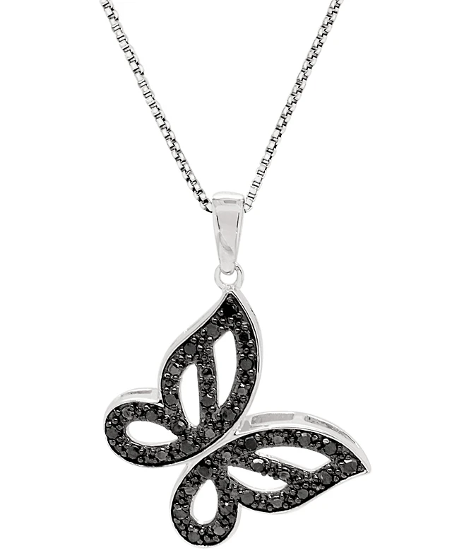 Effy Diamond Pave Butterfly 18" Pendant Necklace (1/10 ct. t.w.) in Sterling Silver