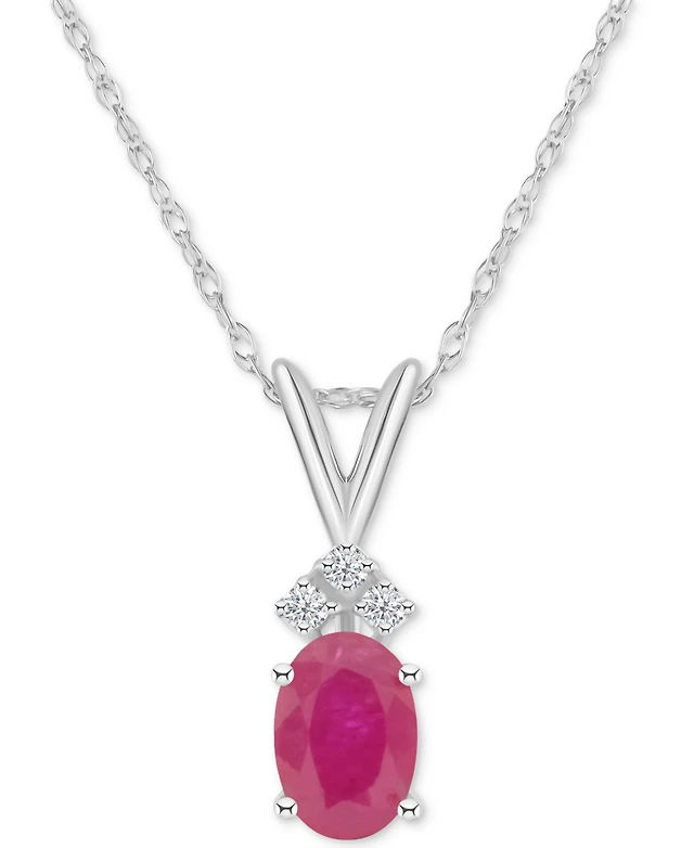 Ruby (3/4 ct. t.w.) & Diamond (1/8 Double Flower 18" Lariat Necklace Sterling Silver (Also Sapphire Emerald)