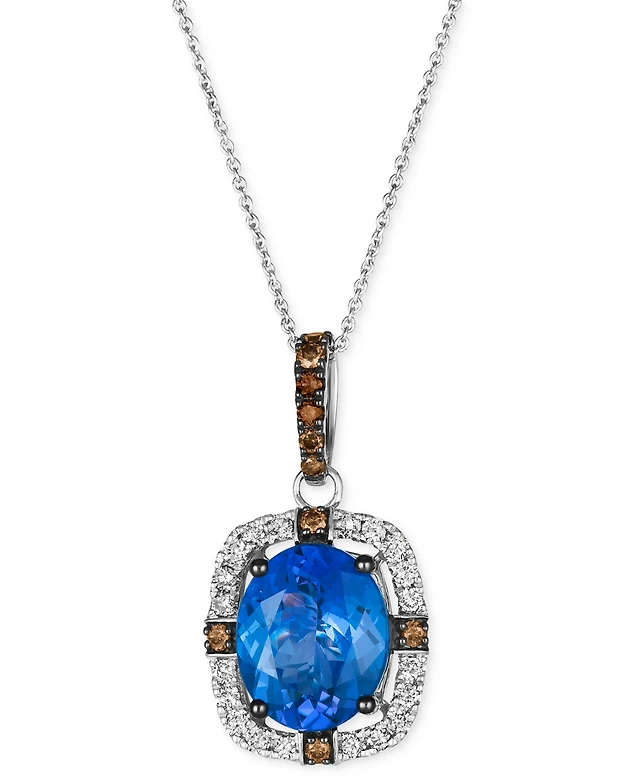 Effy Collection Diamond (1/20 ct. t.w.), Blue (2-3/4 ct. t.w.) & London Blue Topaz (1 ct. t.w.) Pendant Necklace in 14k Yellow Gold