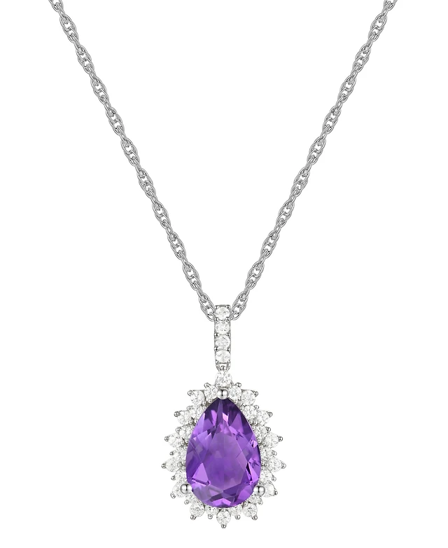 Blue Topaz (1-1/10 ct. t.w.) & Lab-Created White Sapphire (1/6 Pear Halo 18" Pendant Necklace 10k Gold (Also Additional Gemstone