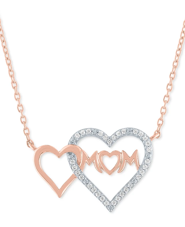 Diamond Double Row Two Heart 18" Pendant Necklace (1/4 ct. t.w.) in Sterling Silver & 10k Rose Gold