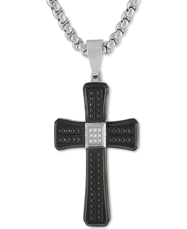 Esquire Men's Jewelry Diamond Cross 22" Pendant Necklace (1/5 ct. t.w.) in Stainless Steel & Yellow Gold-Tone Ion-Plated Stainless Steel