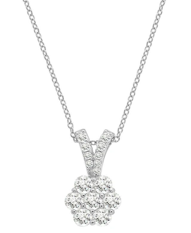Effy Lab Grown Diamond Mixed-Cut Heart Cluster Pendant Necklace (2-5/8 ct. t.w.) in 14k White Gold, 18" + 1" extender