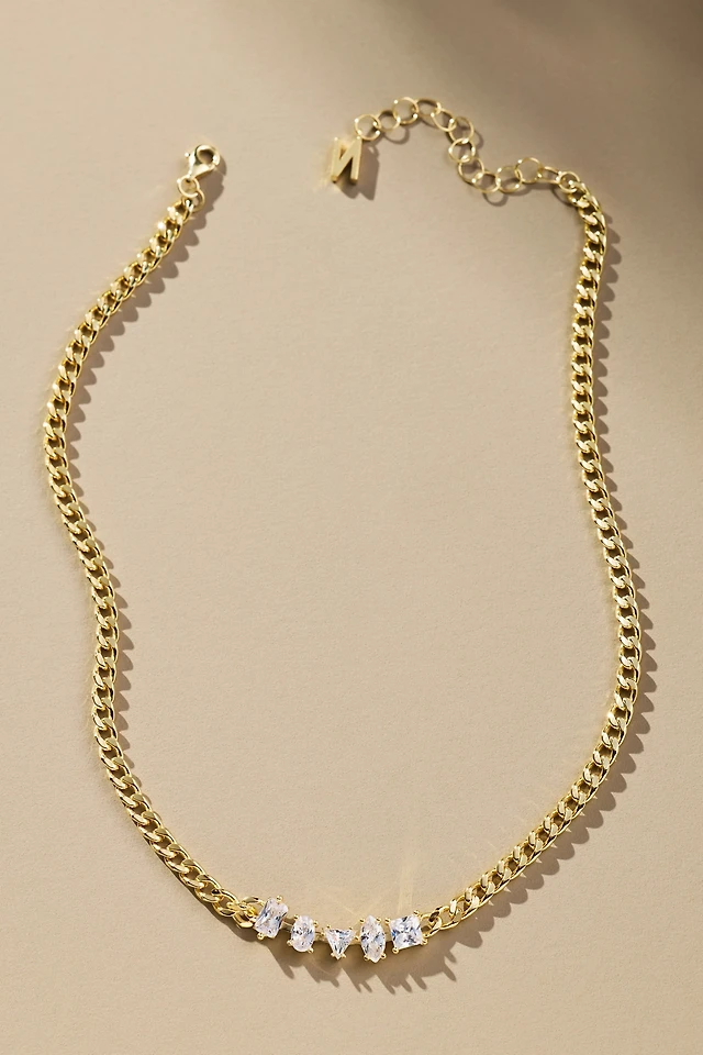 2028 Silver-Tone Crystal Teardrop Necklace 15" Adjustable
