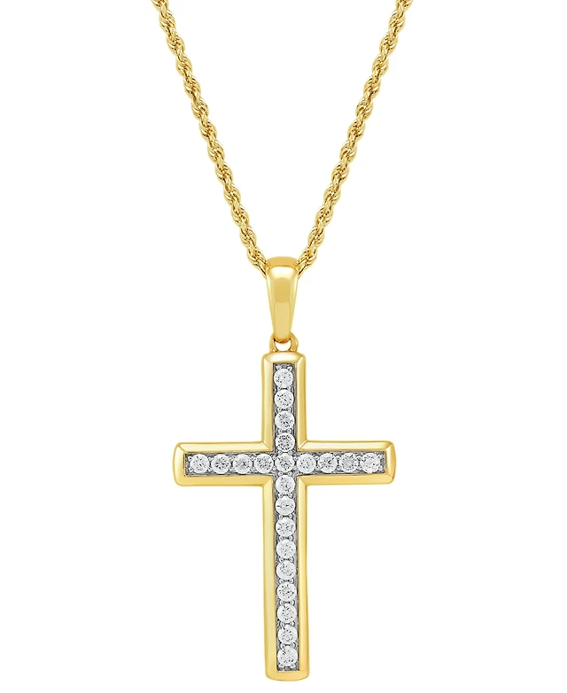 Lab-Created Ruby and Diamond Accent Graduated Cross Pendant in Sterling Silver with 14K Gold Plate