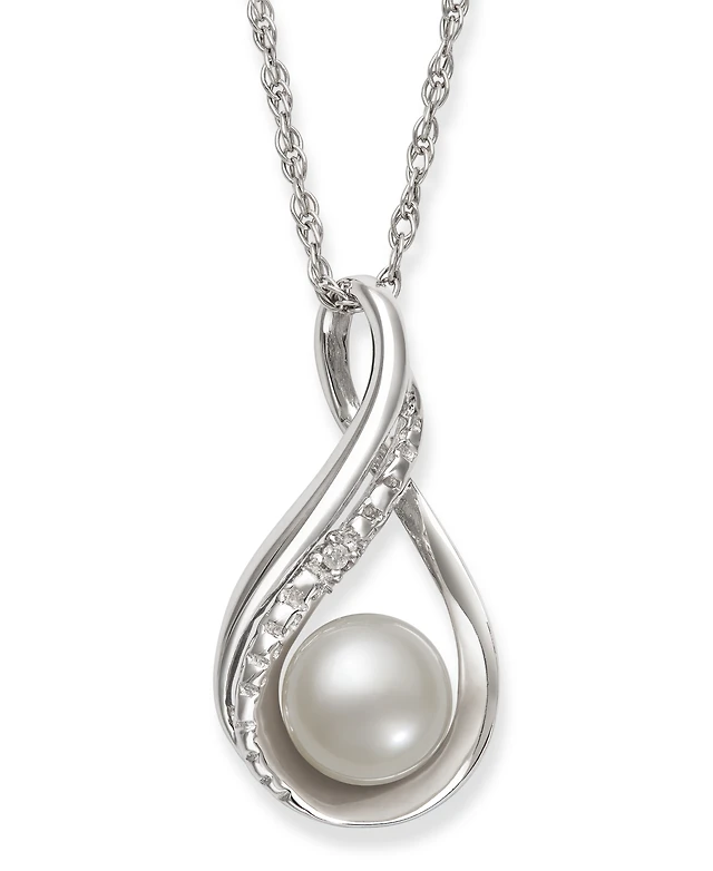 Cultured Freshwater Pearl (7-8 mm) and Diamond Accent Swirl Pendant in Sterling Silver