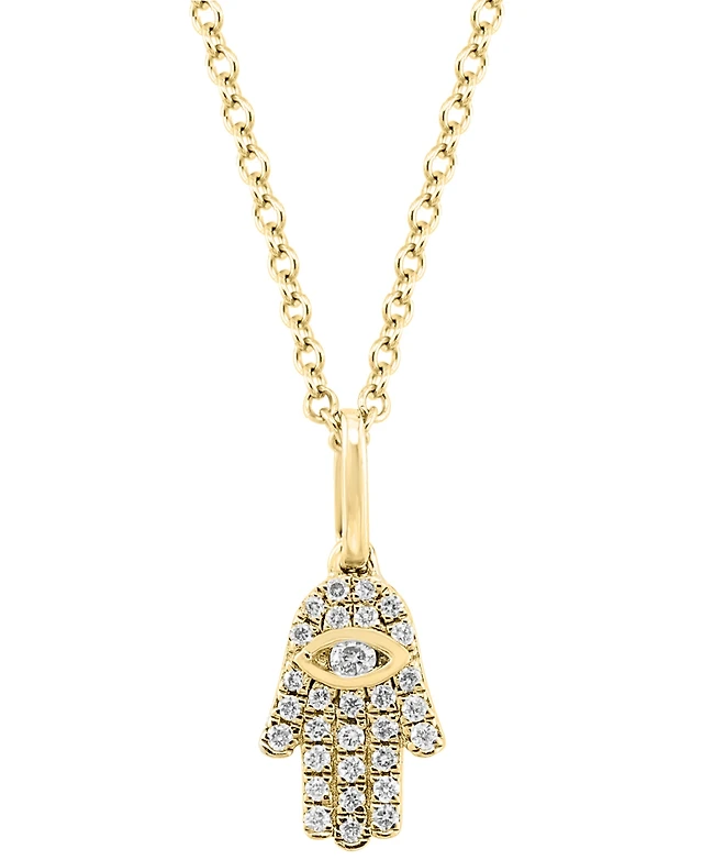 Effy Diamond Pave Hamsa Hand 18" Pendant Necklace (1/10 ct. t.w.) in Sterling Silver or 14k Gold-Plated Sterling Silver