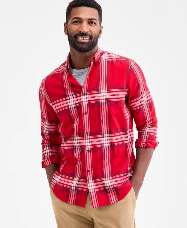 Club Room Men's Plaid Brushed Cotton Button-Down Shirt, Macy's Exclusive