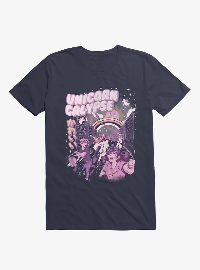 Unicorn Calypse Rainbow Sunshine Attack Navy Blue T-Shirt