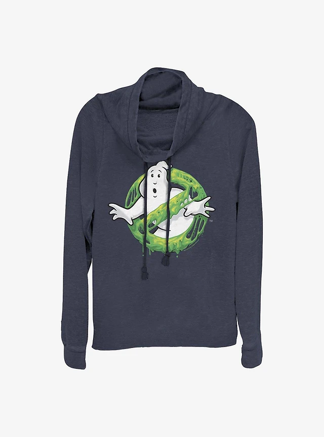 Ghostbusters Ghost Logo Green Slime Cowl Neck Long-Sleeve Girls Top