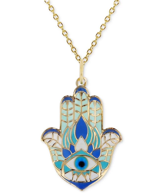 14K Gold Plated with Clear Cubic Zirconia Evil Eye Pendant Necklace
