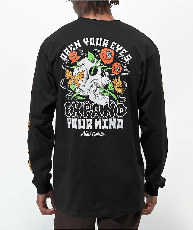 A.LAB Freckle Anime Eyes Black Crop Long Sleeve T-Shirt