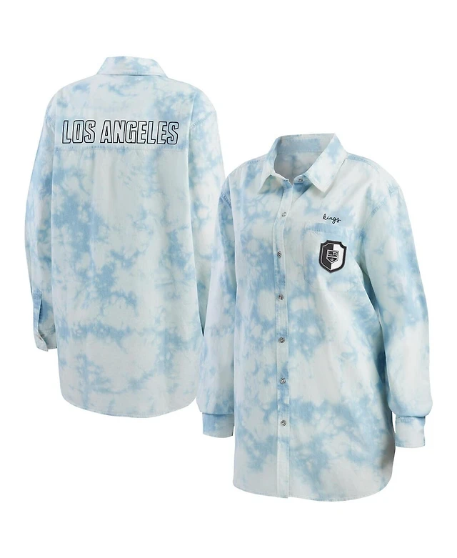 Women's Wear by Erin Andrews White Los Angeles Kings Oversized Tie-Dye Button-Up Denim Shirt