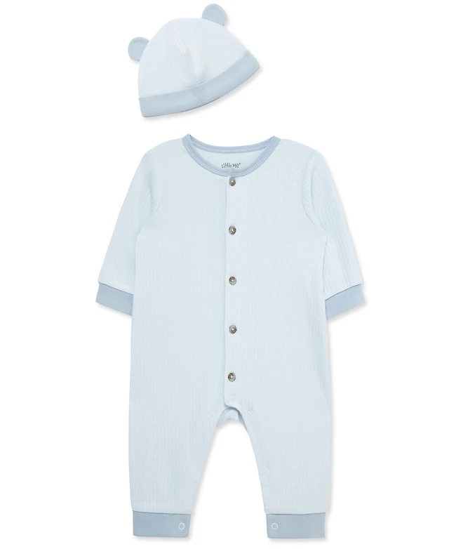 Little Me Baby Boys Button-Down Coverall & Hat Set