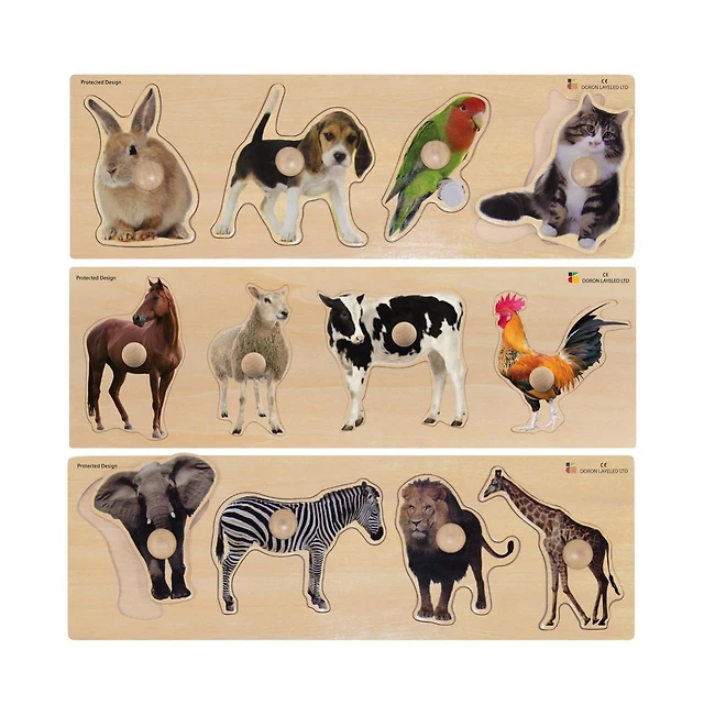 Quokka 3xSET Wooden Montessori Puzzles for Toddlers 1-3 – Learning Realistic Animals