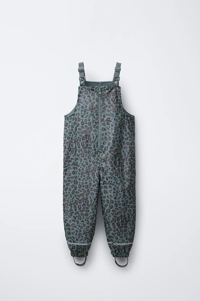 ANIMAL PRINT WATER-RESISTANT RUBBERIZED FLEECE-LINED OVERALLS