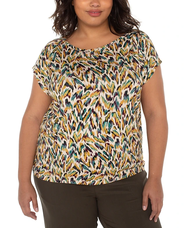 Liverpool Los Angeles Petite Boat-Neck Printed Knit Top