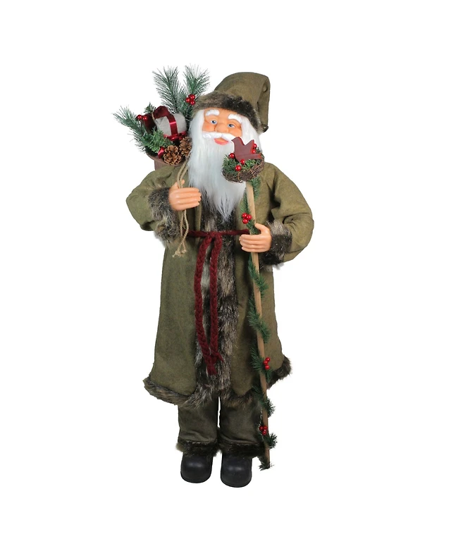 Northlight 51" Plush Standing Santa Claus Christmas Figure with Gift Bag and Staff